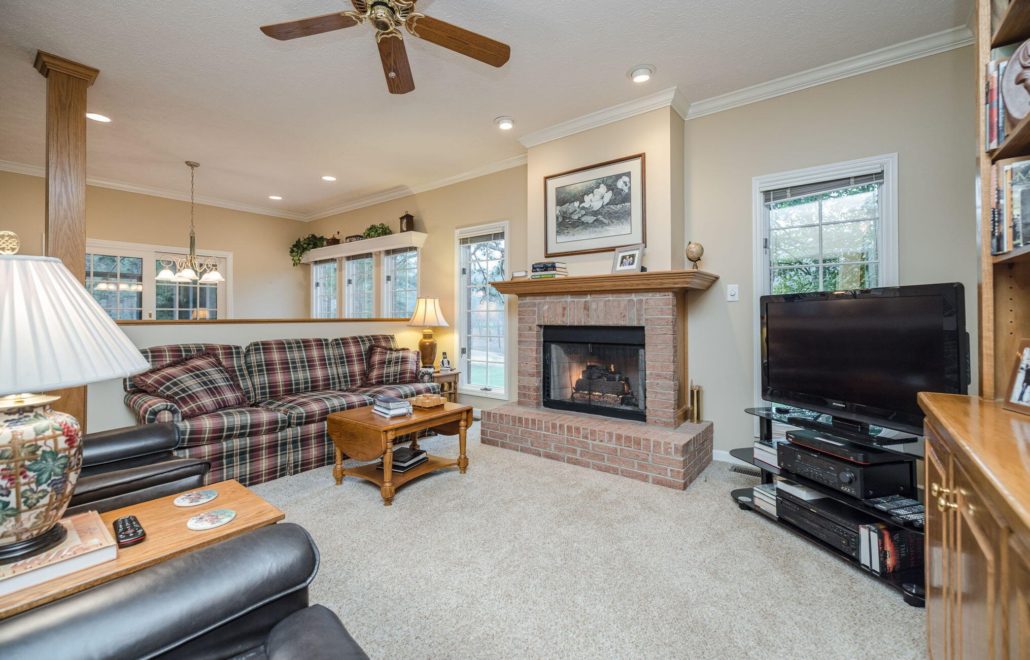 There are pleasing golf views from this single-level, all-brick home at 240 Willow Lake Drive in Woodside.