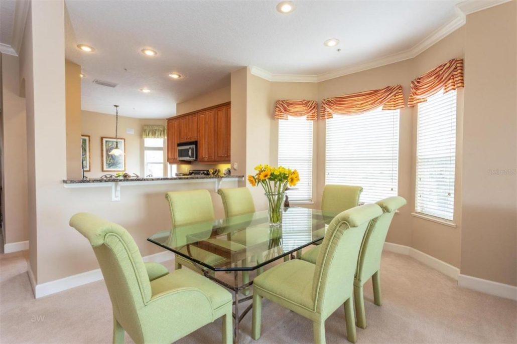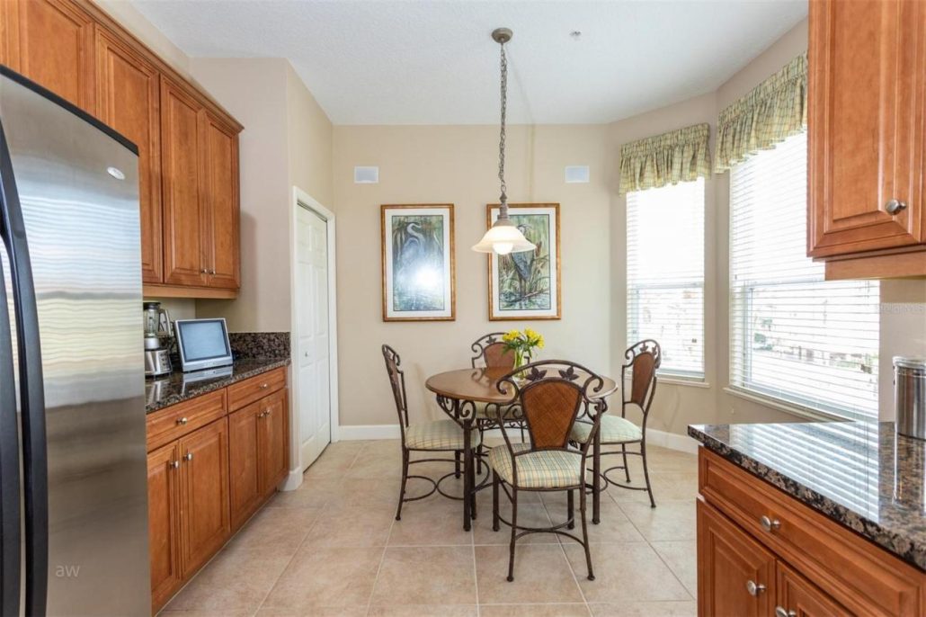 The kitchen features a breakfast nook, granite countertops, stainless steel appliances and a pantry. Send me more about this condo in Hammock Beach!
