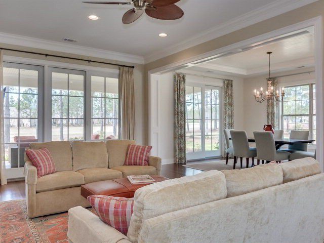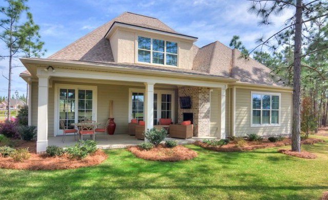 The Cobblestone at 251 Summer Winds Circle, constructed by Southern Living Custom Home Builder Carolina Signature Homes, offers fine views of hole No. 15 on the Hollow Creek golf course.
