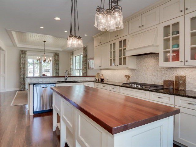 - Kitchen with abundant cabinets, built-in pantry and center island