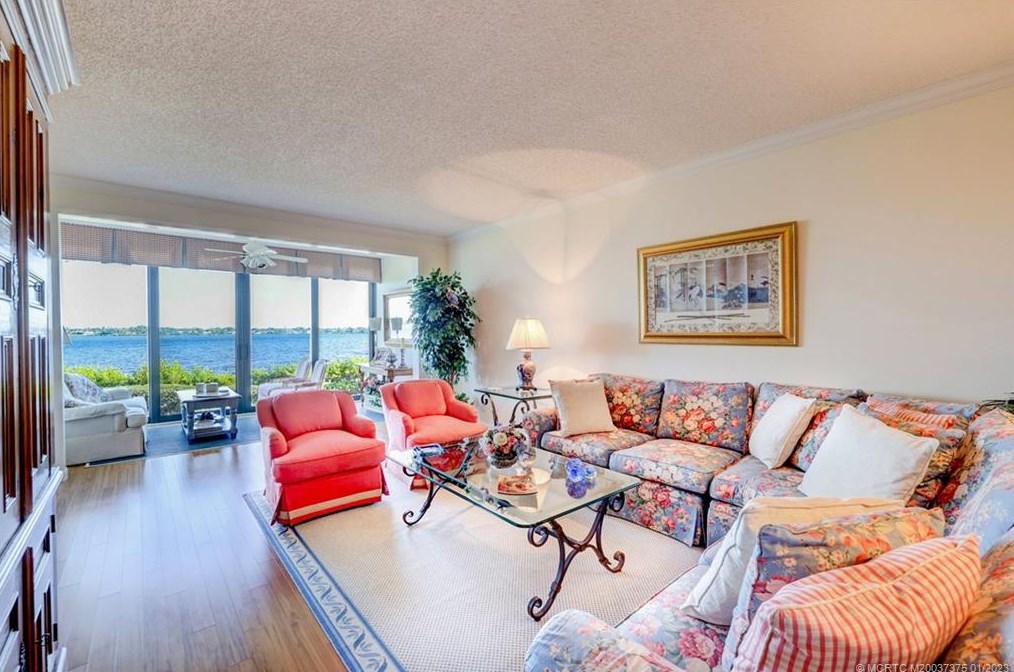 Vistas of the St. Lucie River are unsurpassed from throughout the 1,960-sf residence, which is on the first floor.