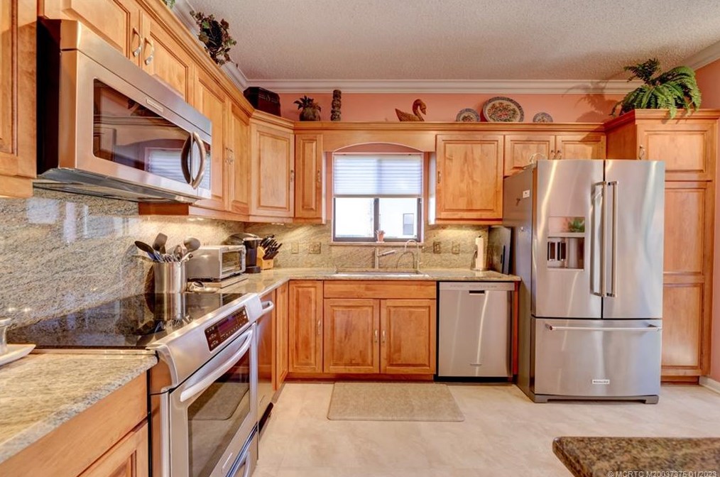 Desirable features Include a split bedroom floor plan, an open kitchen, crown molding, updated bathrooms with granite and two walk-in showers.