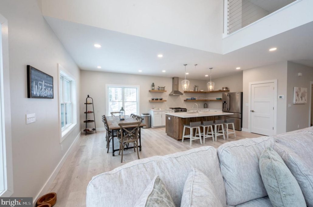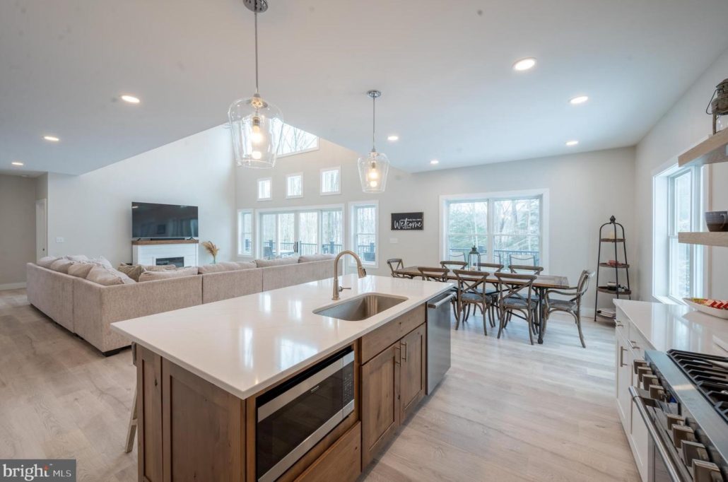 The home’s modern kitchen has quartz countertops, high-end appliances and a walk-in pantry.