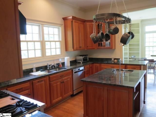 - Chef’s kitchen with Viking stove plus island with extra cooking space