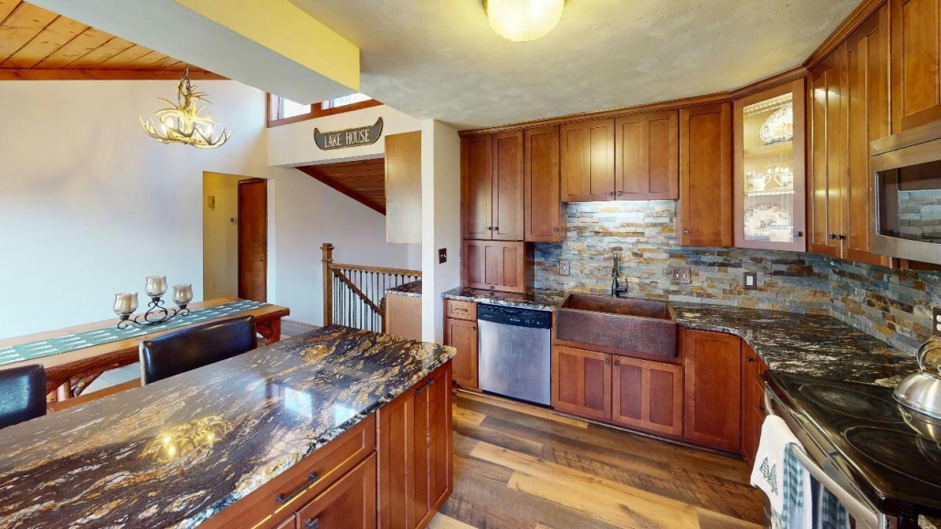 - Kitchen w/ granite counters, maple cabinets