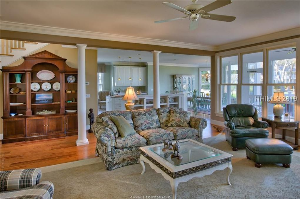 This custom home within the private community of Haig Point features expansive views of Calibogue Sound, the Intracoastal Waterway and the signature 5th hole on the Haig Point golf course.