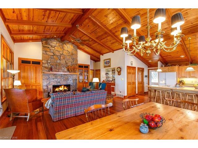 - Great room with soaring vaulted ceilings and massive stone fireplace