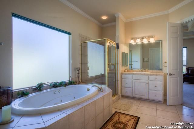 - Large master suite boasts jetted tub, separate shower, dual vanities, walk-in closet