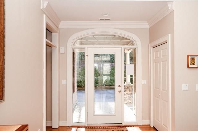 - Trellis-covered entrance, extensive deck and windowed sun room
