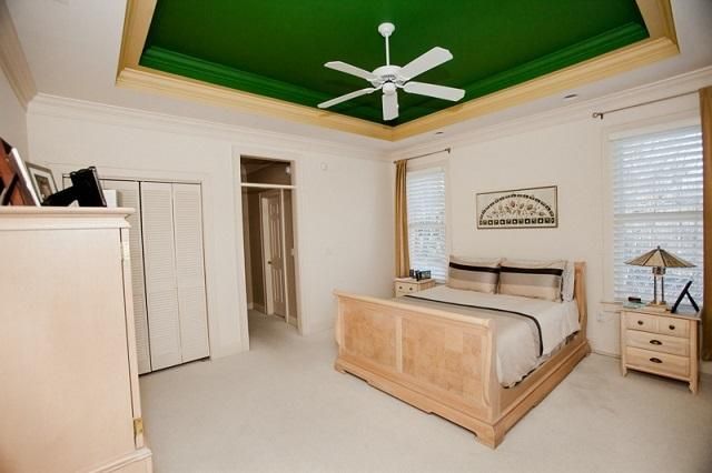 - Master suite with trey ceiling, patio and access and view of a water feature