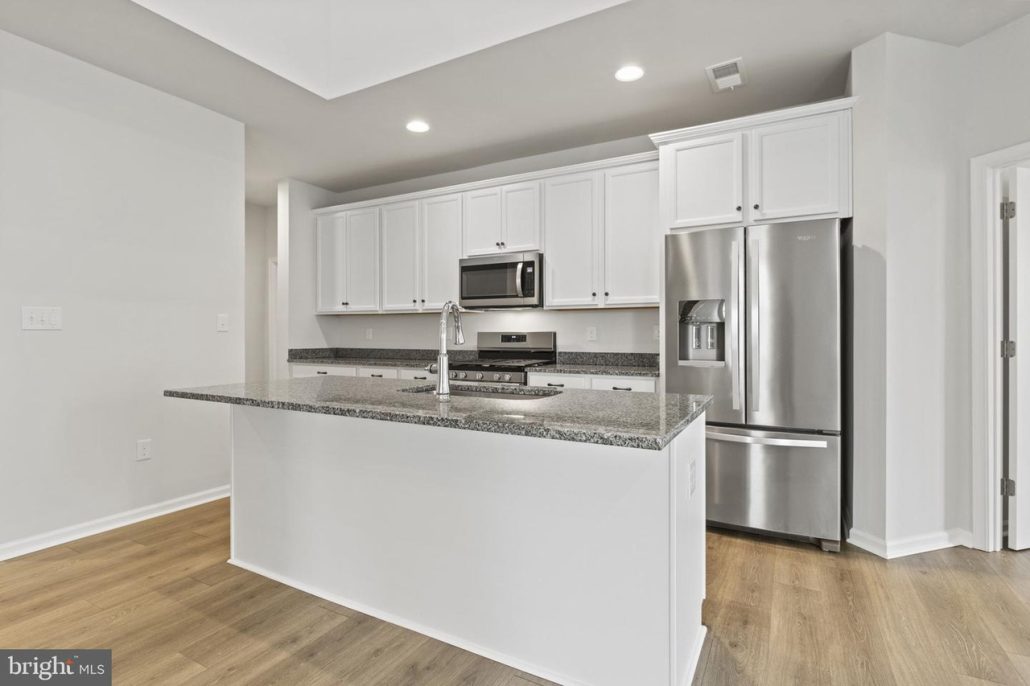 The home’s open, flowing interior showcases vaulted ceilings and a gourmet kitchen with granite countertops and stainless steel Whirlpool appliances.