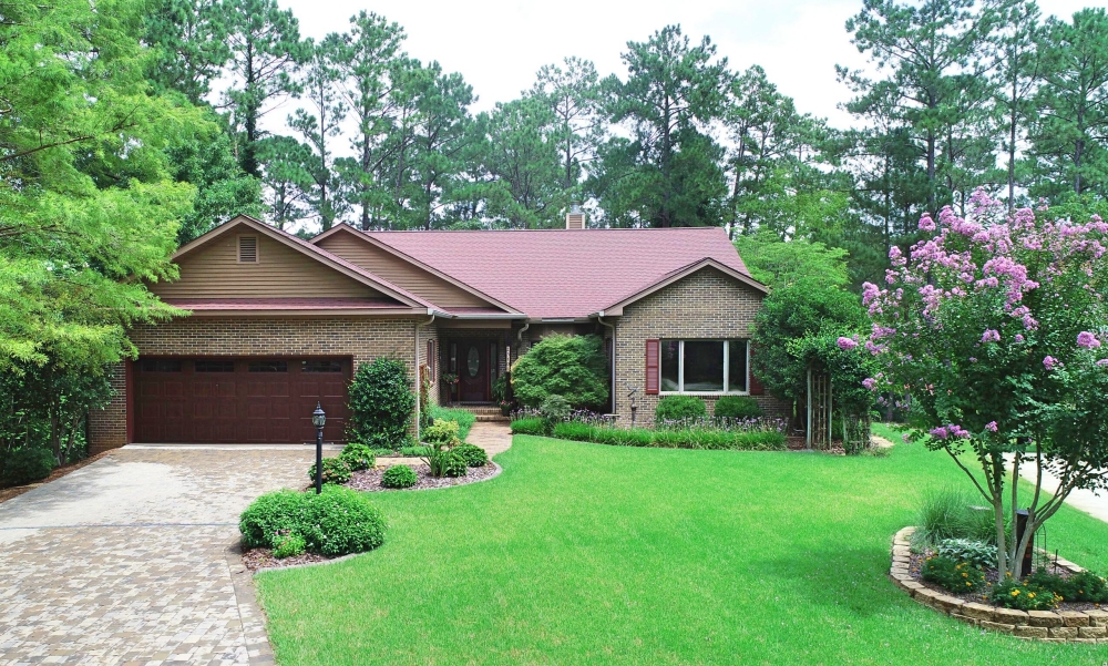 This pristine brick home at 310 Divot Court in Savannah Lakes Village, SC, sits along the No. 6 fairway of the community’s Tara Golf Course.