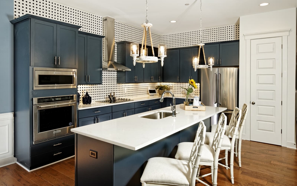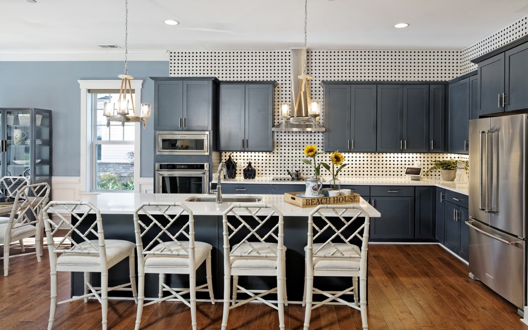 The open floor plan includes a gourmet island kitchen.