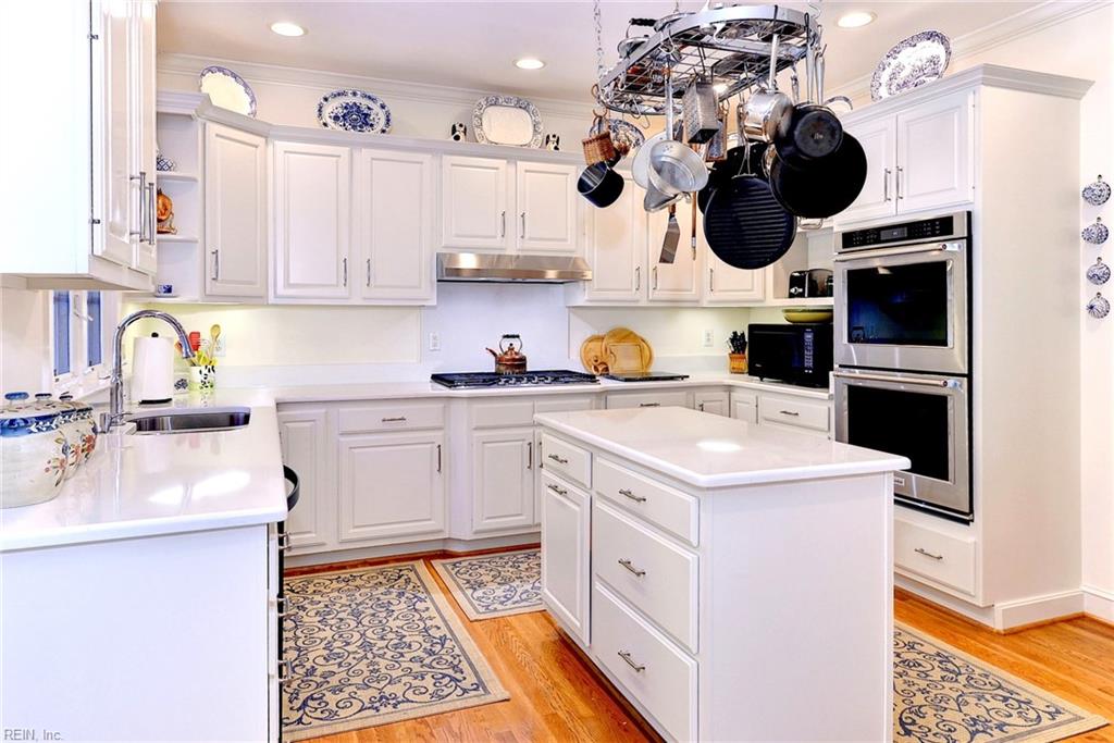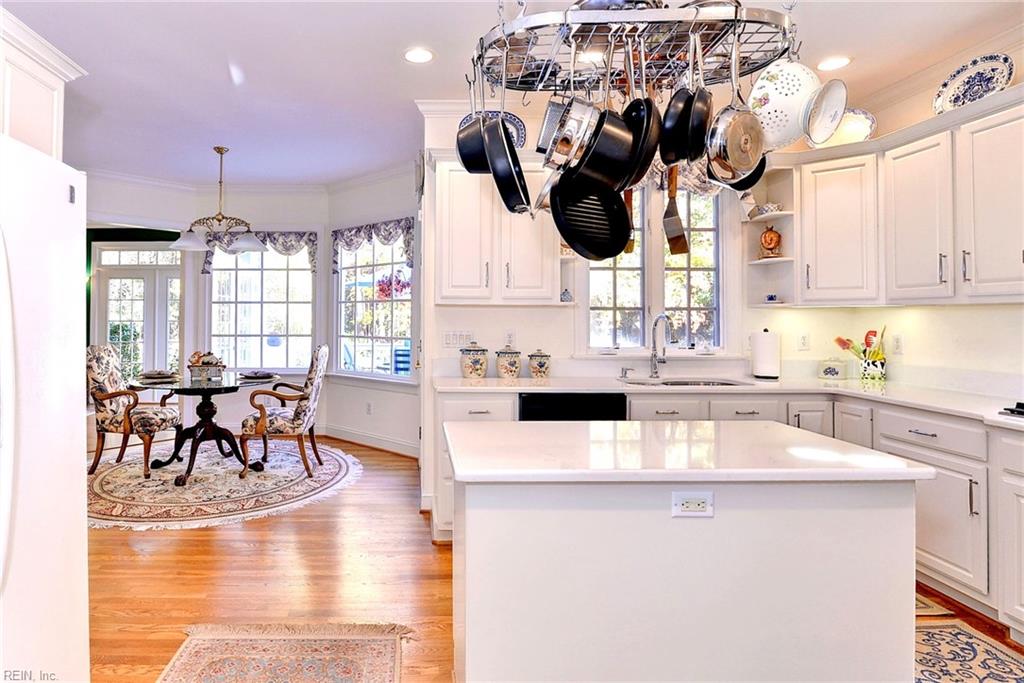 Adjacent is home’s white-on-white eat-in kitchen, updated in 2023 with newly painted cabinets, new quartz countertops and new built-in appliances.