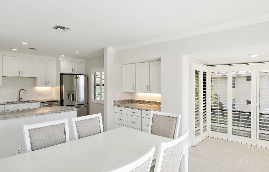 - Remodeled kitchen w/ white cabinets, white subway tile back splash