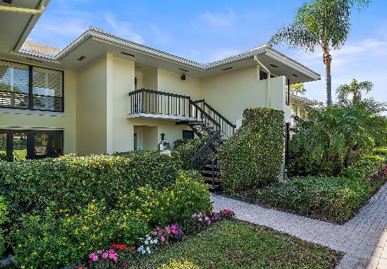 This light-filled, well-appointed residence at 3723 Quail Ridge Drive N in The Club at Quail Ridge is a second-floor unit with an excellent fairway view. Its pristine condition is the result of a complete renovation.