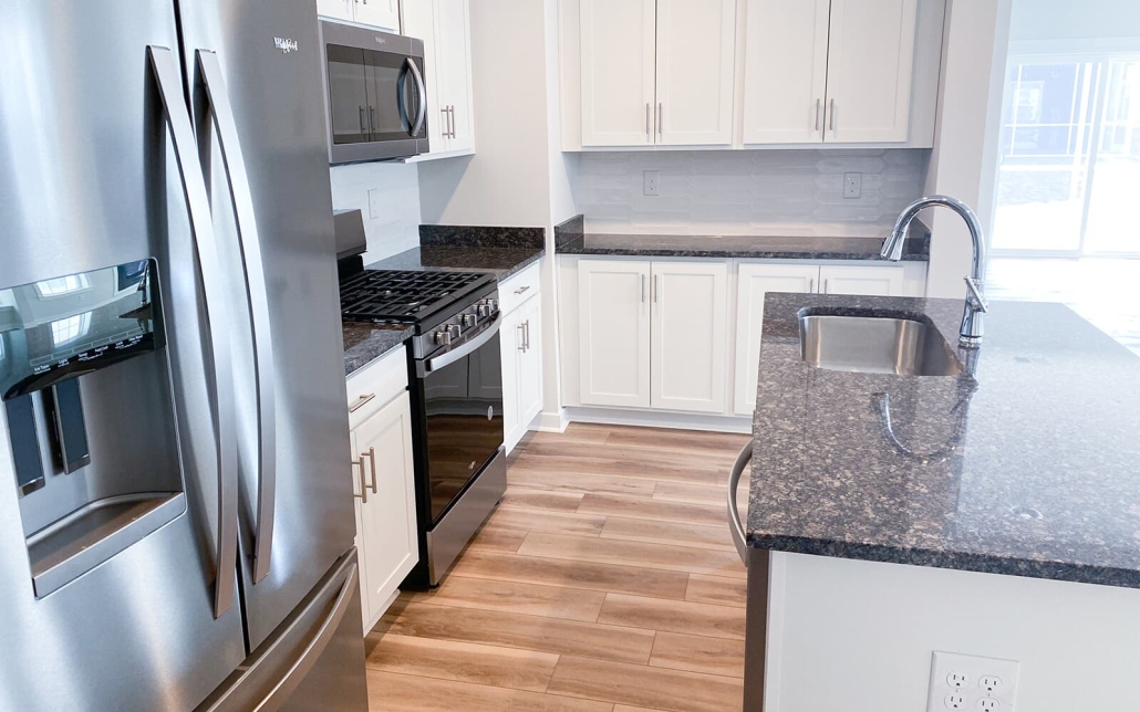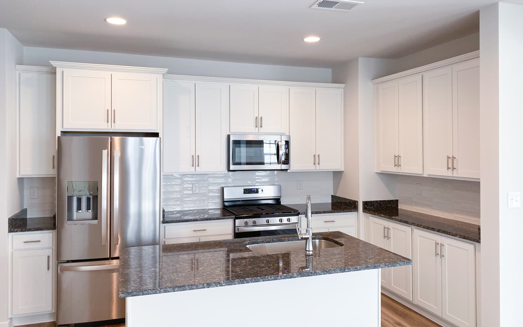 - Stainless steel appliances, granite counters
