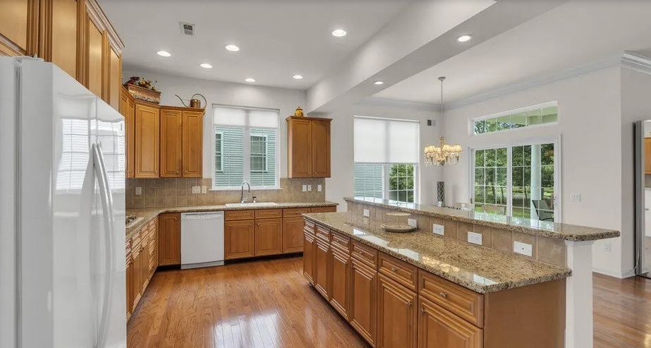 The home offers a spacious island kitchen.