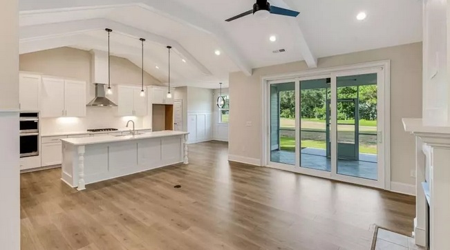 - Vaulted living room ceiling w/ beams and gas fireplace