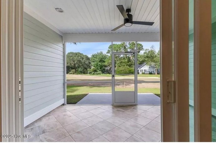 The home has a spacious porch with tile floors.