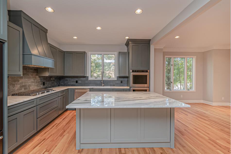 - Kitchen with slate backsplash, Viking and KitchenAid appliances