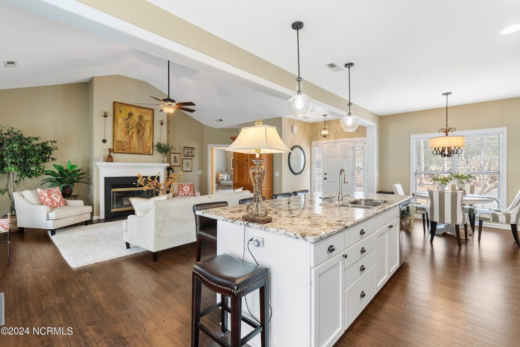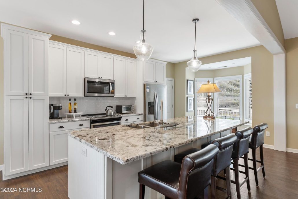 The remodeled kitchen features new cabinets, new appliances, quartz countertops and new flooring. Send me more about this home in St. James Plantation!