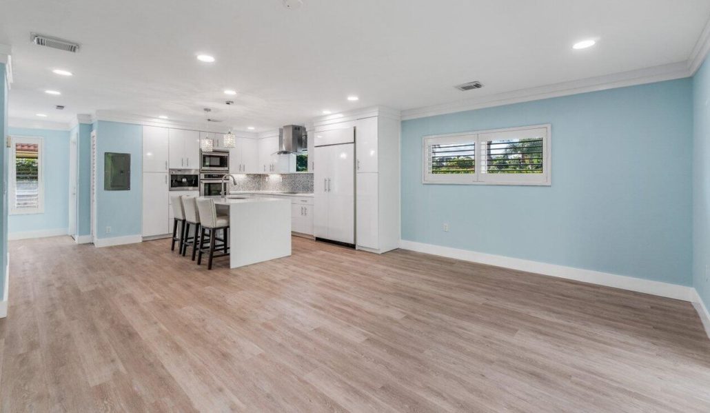 It features recessed lighting and wood-look luxury vinyl plank flooring throughout.