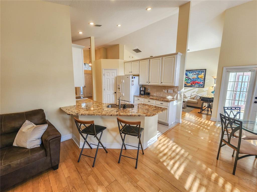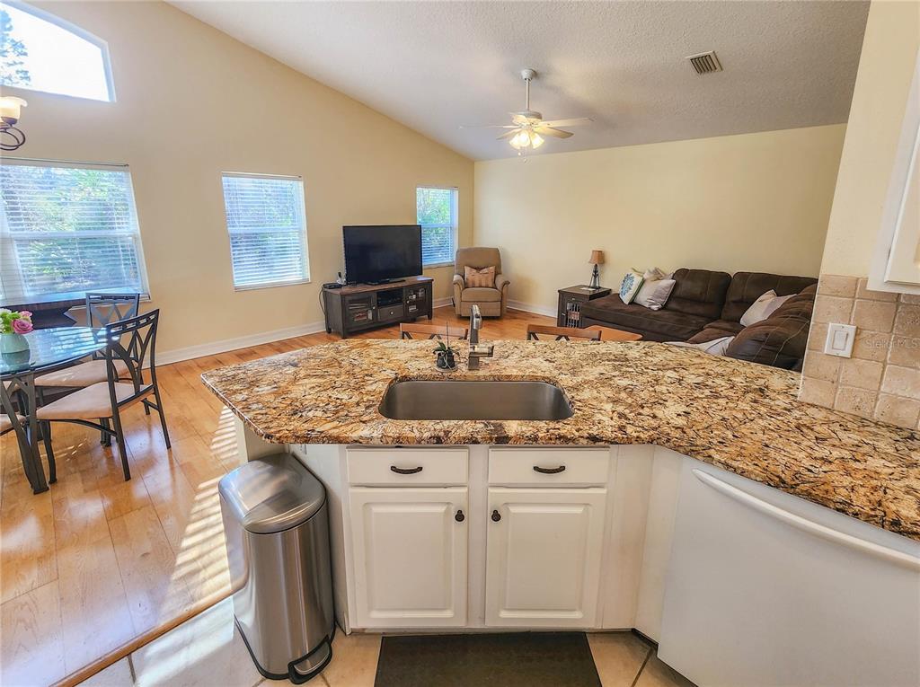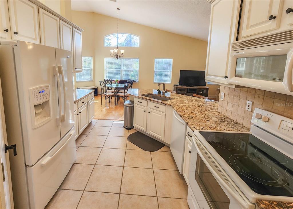 The kitchen has granite countertops with direct access to the dining room and family room.
