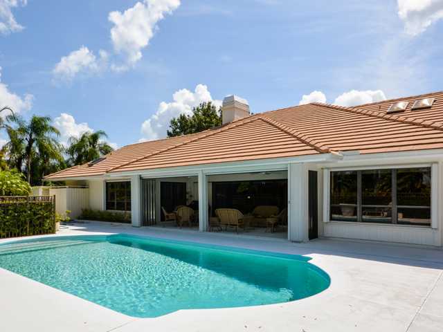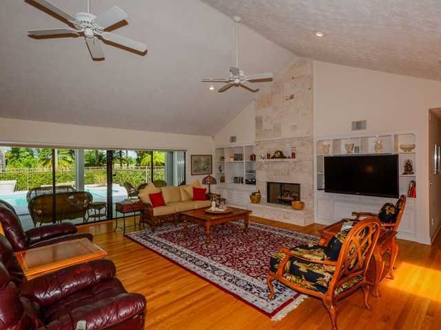 This FL home with pool is ideally sited and designed to afford panoramic views of No. 16 fairway and lake. It has a circular drive, double-door entrance and a casually elegant living room with oak flooring and fireplace.