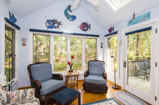 Located in a quiet, refined neighborhood near Kiawah’s front gate, this lushly landscaped getaway is within an easy bike ride of Fresh Fields Village and East Beach Town Market, and only a short walk the owner-exclusive oceanfront recreation center.