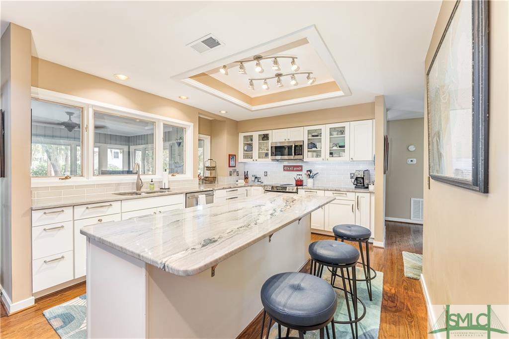 The home features an updated island kitchen.