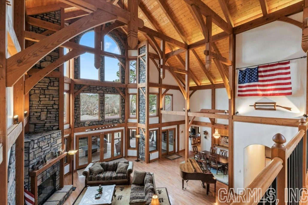 - Grand living space w/ soaring 34-foot ceilings