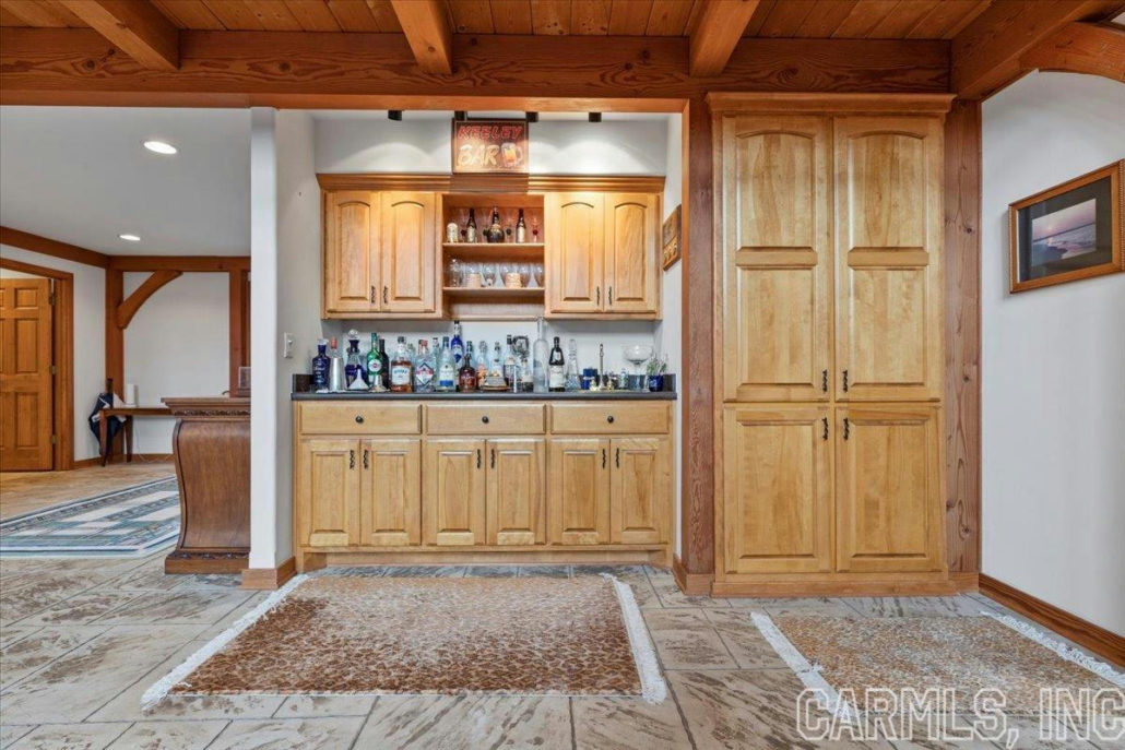 Upstairs is a loft with pool table along with a theater room complete with Murphy bed and full bath. The upper level also includes a spacious balcony with expansive views of the surrounding hills and valleys.