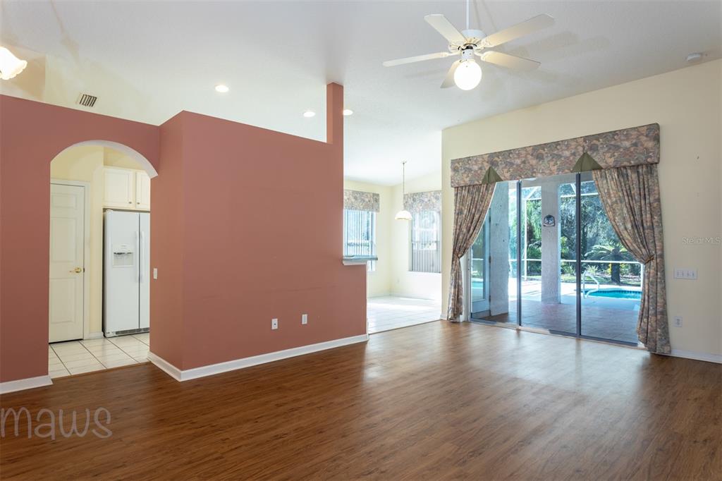 The home offers a screened lanai w/ pool.