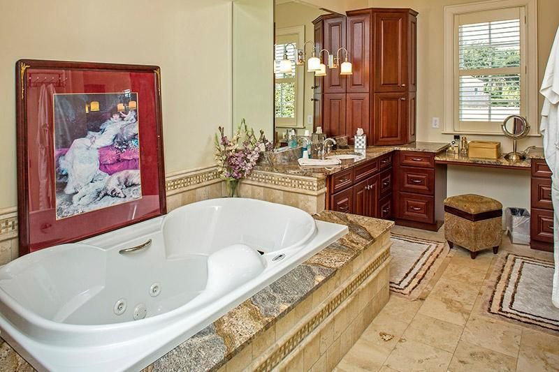 - Master bath has jetted tub, separate shower and a wraparound dual-sink vanity