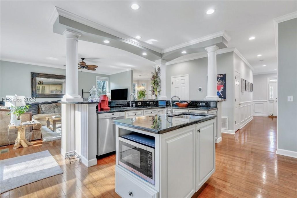 This 2,576-sf home at 62 Royal Pointe Drive in Moss Creek offers privacy and many custom upgrades.