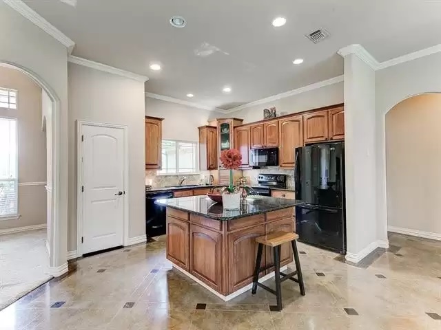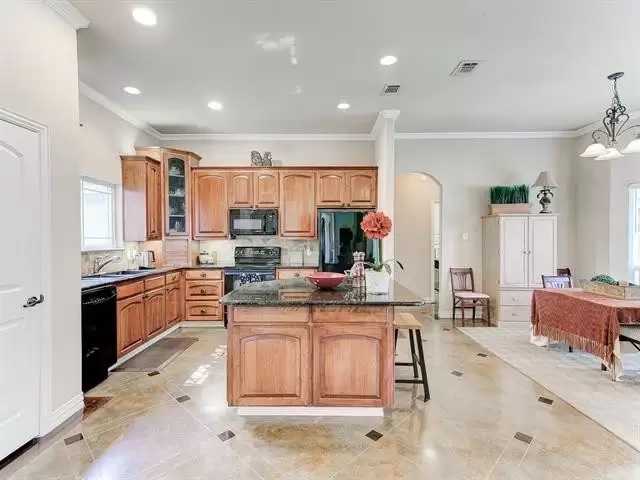 - Open-concept island kitchen