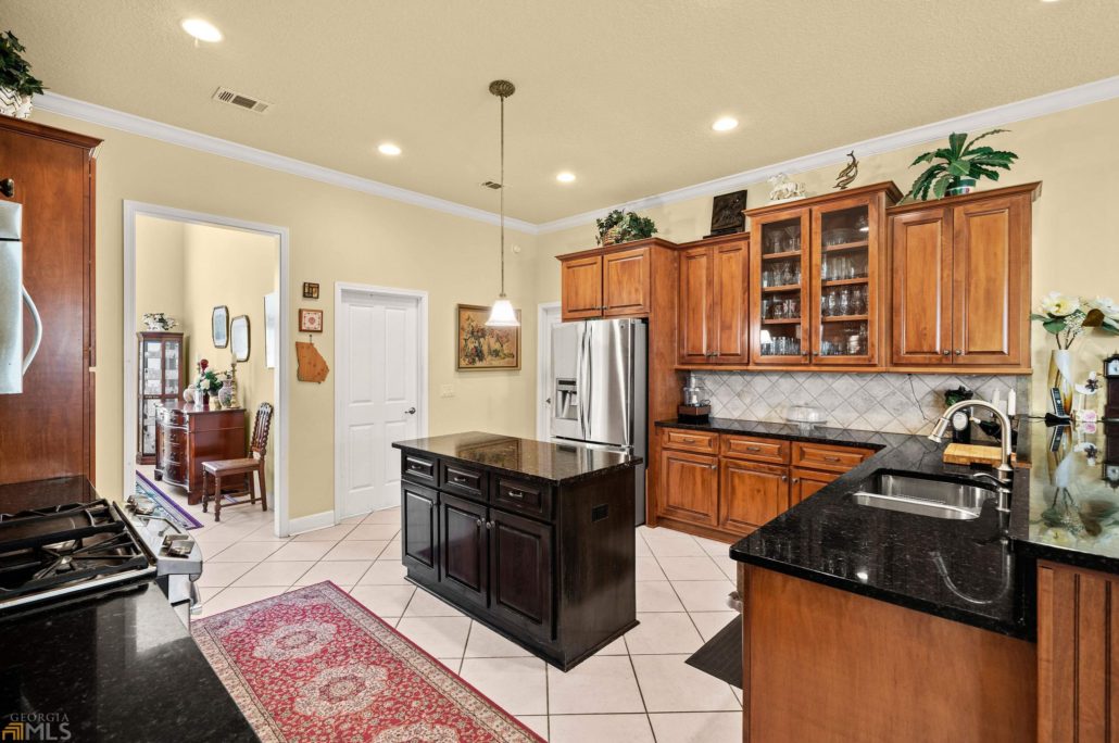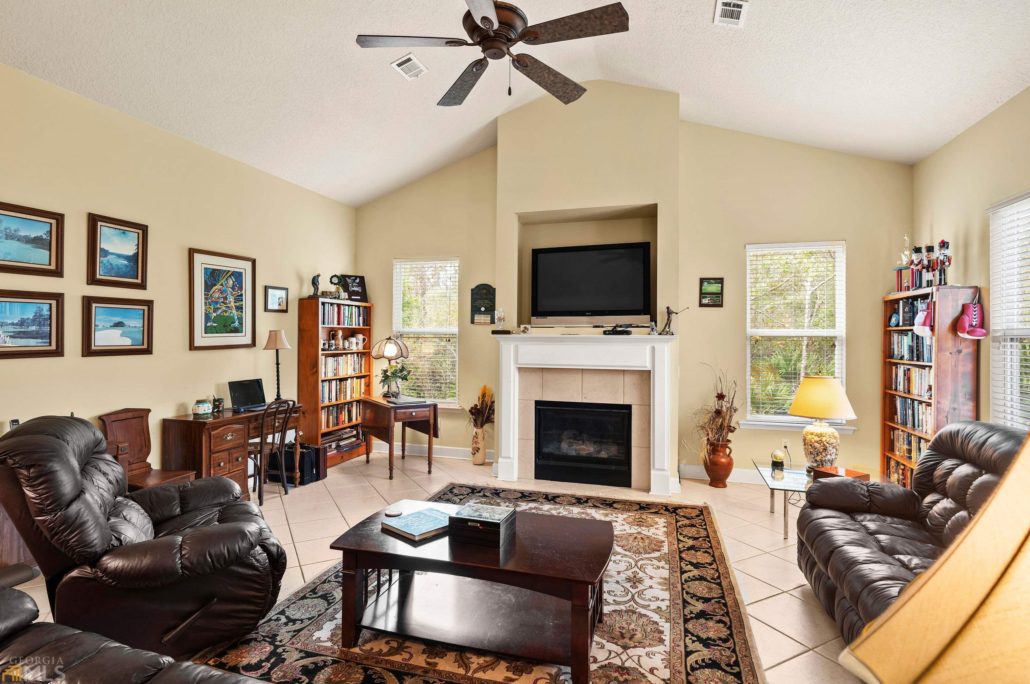 The home’s 2.5-car garage provides plenty of parking for vehicles and the included-with-purchase golf cart.