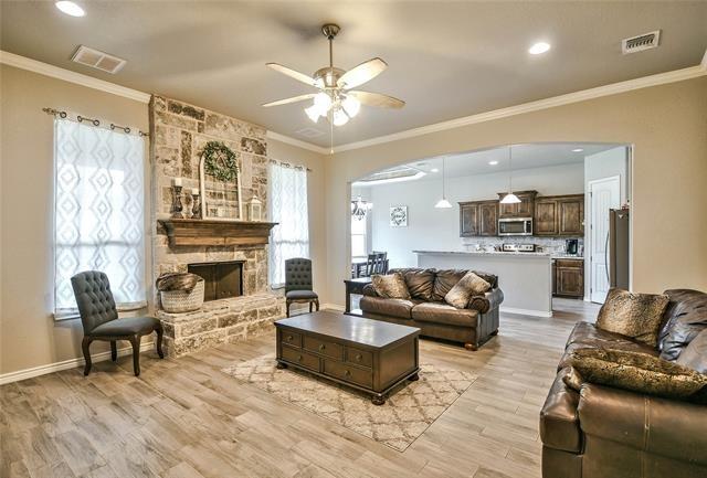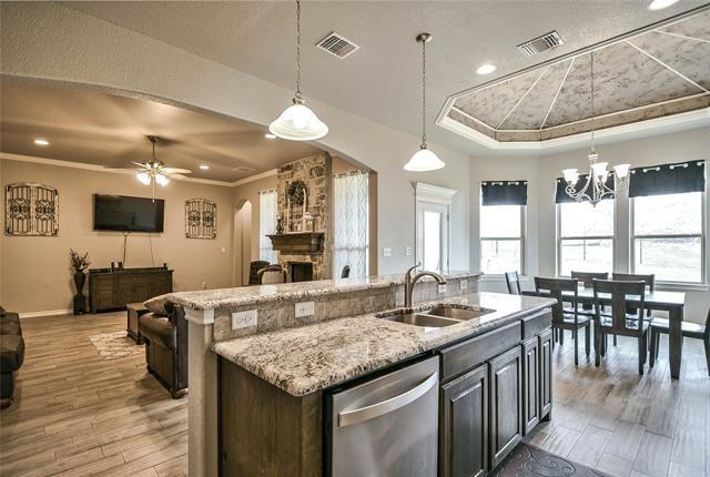 Enjoy a full open floor plan in this single-level, 2,096-sf home at 6500 Tara Court in Pecan Plantation. The living and dining areas and island kitchen all easily flow into one another for convenience and relaxed entertaining.