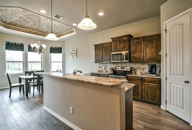 An oversized owner’s suite features a beautifully textured tray ceiling, granite counters, soaking tub and large walk-in shower. The closet leads directly to a large laundry room.
