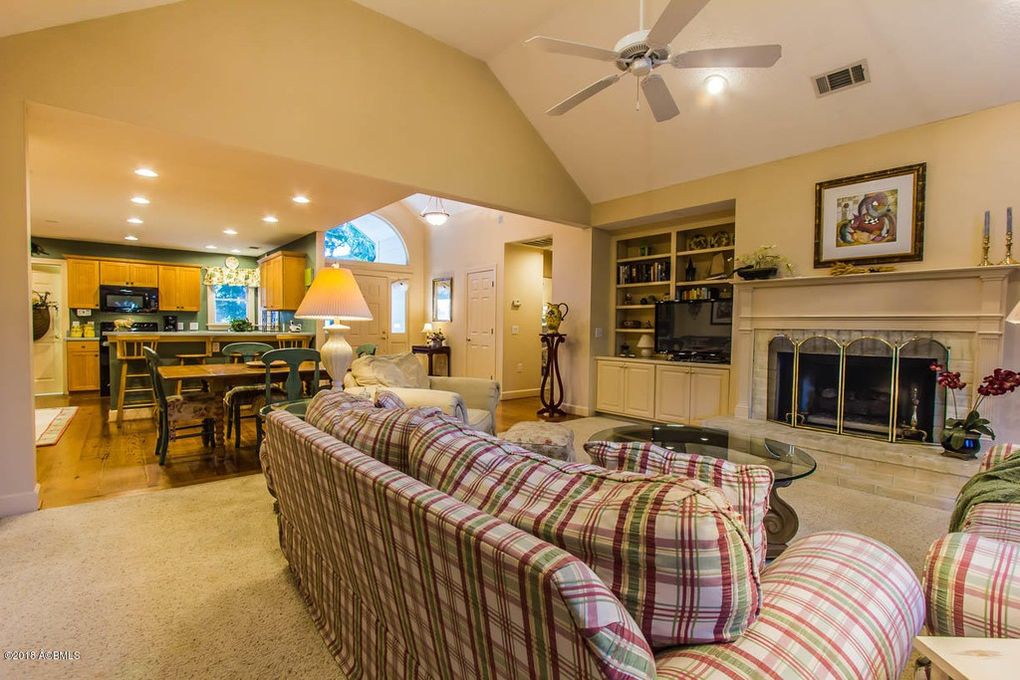 - Great room w/ fireplace, built-in shelves, lots of windows, high ceilings