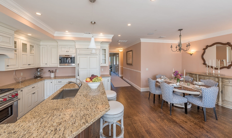 - Crown moldings, hardwood flooring, wainscoting and recessed lighting