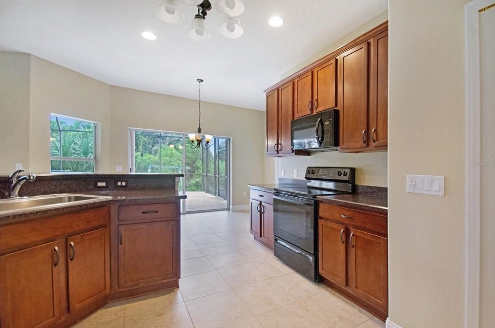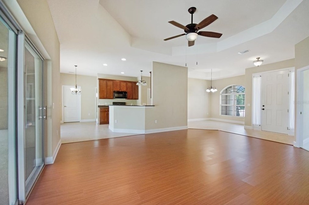There are tray ceilings and custom lighting throughout the home’s 1,853 sf of living space.
