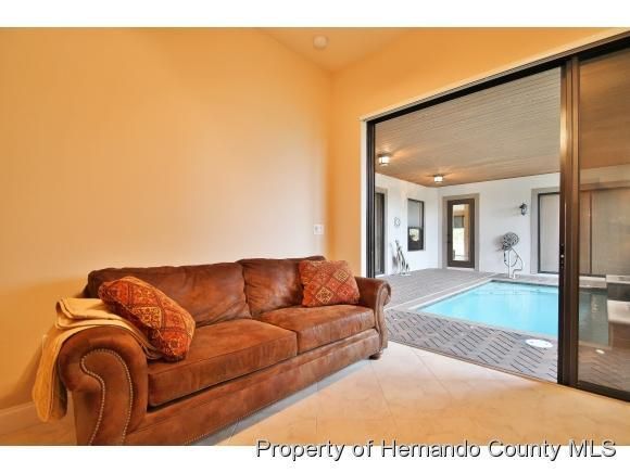 This 2,065-sf single-family courtyard-style home has upgraded fixtures and window treatments plus a separate cabana for guest accommodations beside the home’s private heated pool.