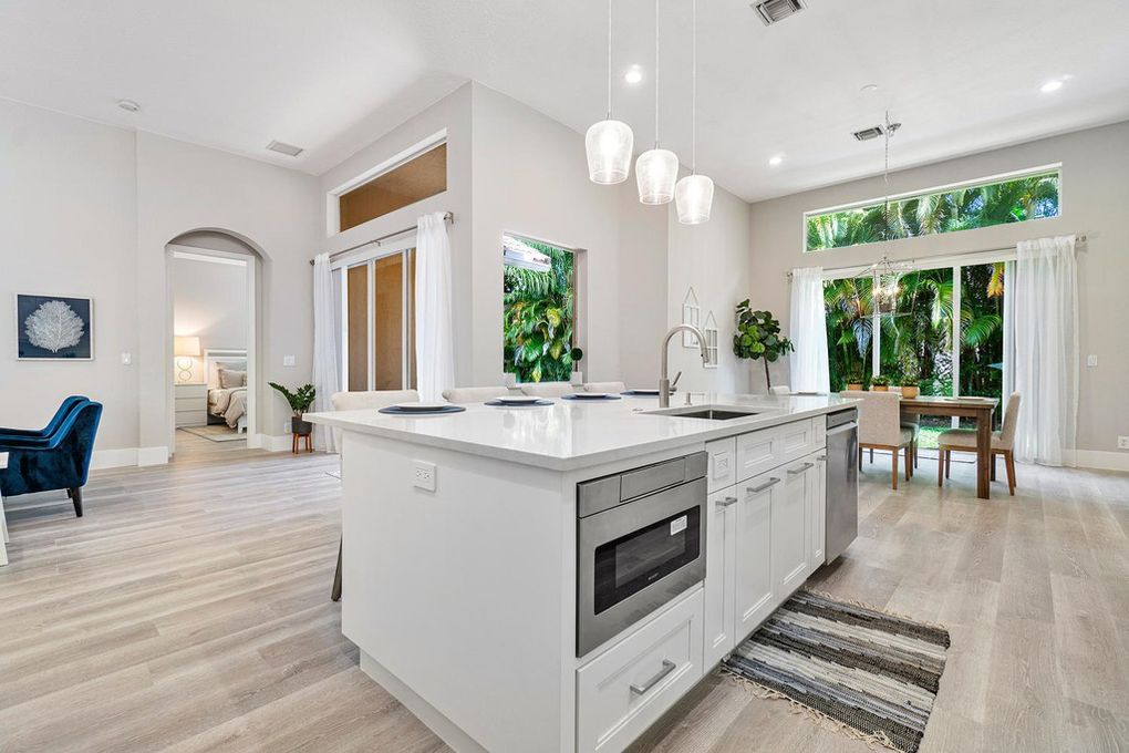 This completely renovated 2,200-sf, contemporary home is located at 9008 Sand Pine Lane in The Grande section of the Club at Ibis. The neighborhood is a popular one, and having its own private community pool is one of the many reasons.