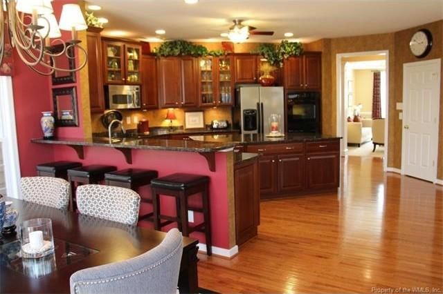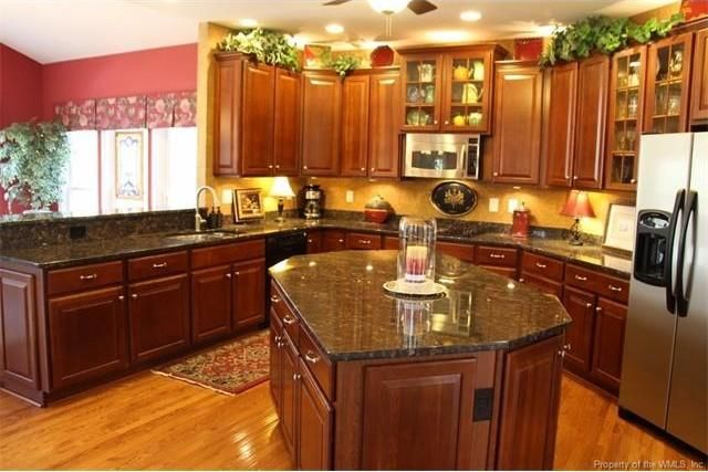 - Custom kitchen has 42-inch cherry cabinets, granite counters, morning room