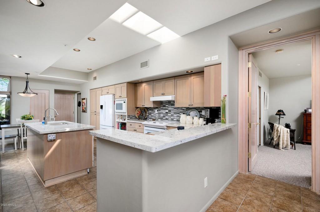 This 2,086-sf golf cottage at 9939 E Graythorn Dr in the Desert Mountain community offers classic mountain and sunset views. It is well-located on a cul-de-sac road and in easy walking distance of the community’s Sonoran Fitness Facility