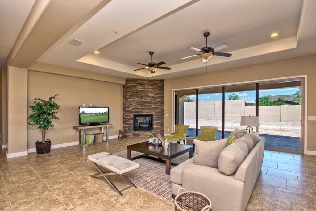 Interior architectural details include a stacked-stone fireplace surround, exposed beams and rich hardwood flooring. Home is in a desirable location and has a three-car garage. Listed at $567,023. Send me more information about Blackstone at Vistancia!