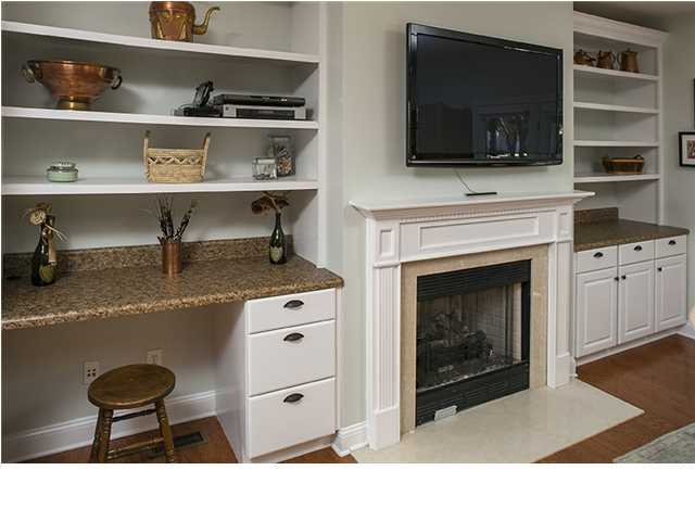 The spacious family room is open to the kitchen and includes a fireplace with built-in shelves and cabinets on each side. The second-floor master suite has a walk-in closet and a full bath with a double sink vanity, a garden tub and a glass front shower. Listed at $479,000. Send me more information about Daniel Island!