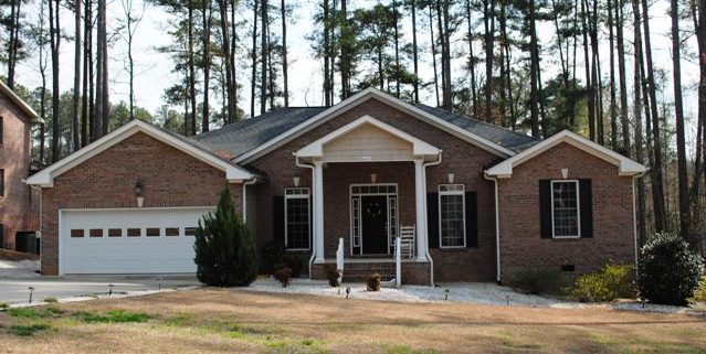 Carolina Trace, Sanford NC is spotlighting a golf-front home with 4-BR/3-BA and a 2-car garage for just $249,800. Spacious at approximately 2,256 sf, this one-story residence has two master suites, an open floor plan, hardwood & ceramic tile floors, built-in bookcases and a gas log fireplace in family room.